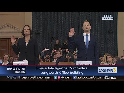 House Impeachment Inquiry Hearing - Hill & Holmes Testimony - Friday Play Des Res 21 10 11 - Fiona Hill, a former National Security Council senior director for Europe and Russia, and David Holmes, counselor for political affairs at the U.S. Embassy in ...