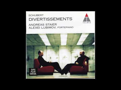 Franz Schubert Divertissements Andreas Staier Alexei Lubimov Fortepiano - I. Andante 0:00 II. Marcia - Andante con moto 12:35 III. Allegretto 16:21 Performed by Alexei Lubimov and Andreas Staier, on 1996 copy of 1826 Conrad Graf ...
